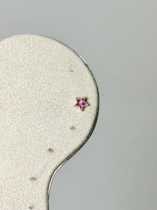 Piercing Estrella Zirconia Magenta, Bezel, Oro 14kt, Internal Thredded Closure