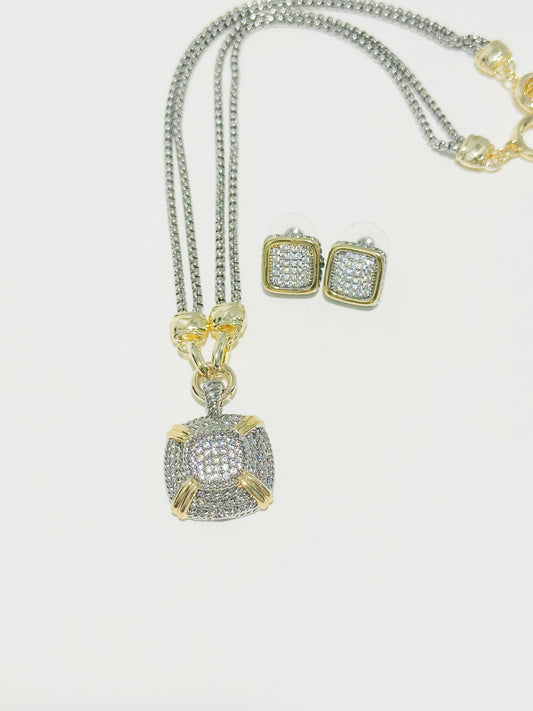 Set Gold Filled, Cadena & Pantallas Mariposa Zirconia Clear