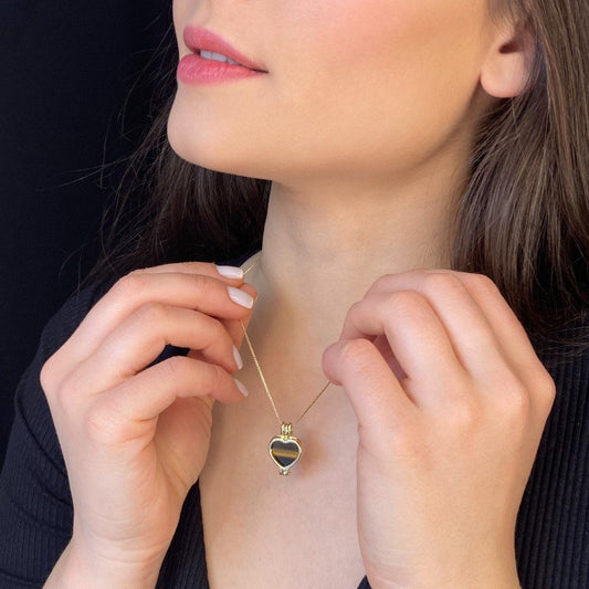 Possebon Joias Collar Charm Corazón Small, Piedra Natural Interchangeble, Brass Gold Plated
