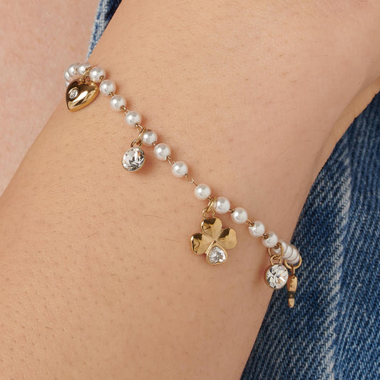 Pulsera, Charm Mariposa y Corazones con Zirconia Blanca, 7.4mm, Gold Filled
