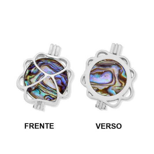 Possebon Joias Set Collar y Pantallas Stud, Piedra Natural Mosaíco Madre Perla, Brass Gold Plated