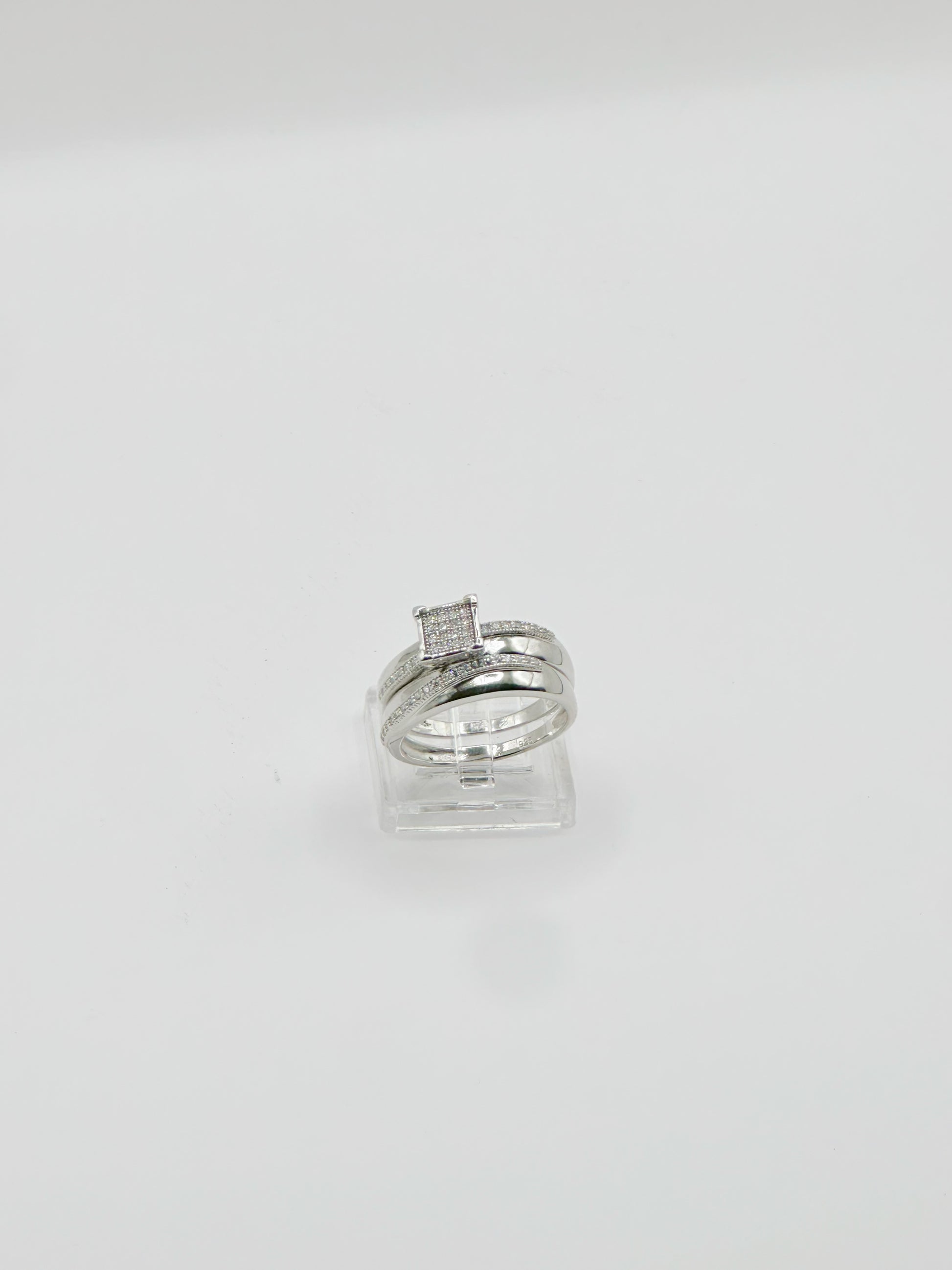Sortija de Matrimonio Mujer, Duo, Size 8,1MM Micro Pave Zirconia, Plata 925