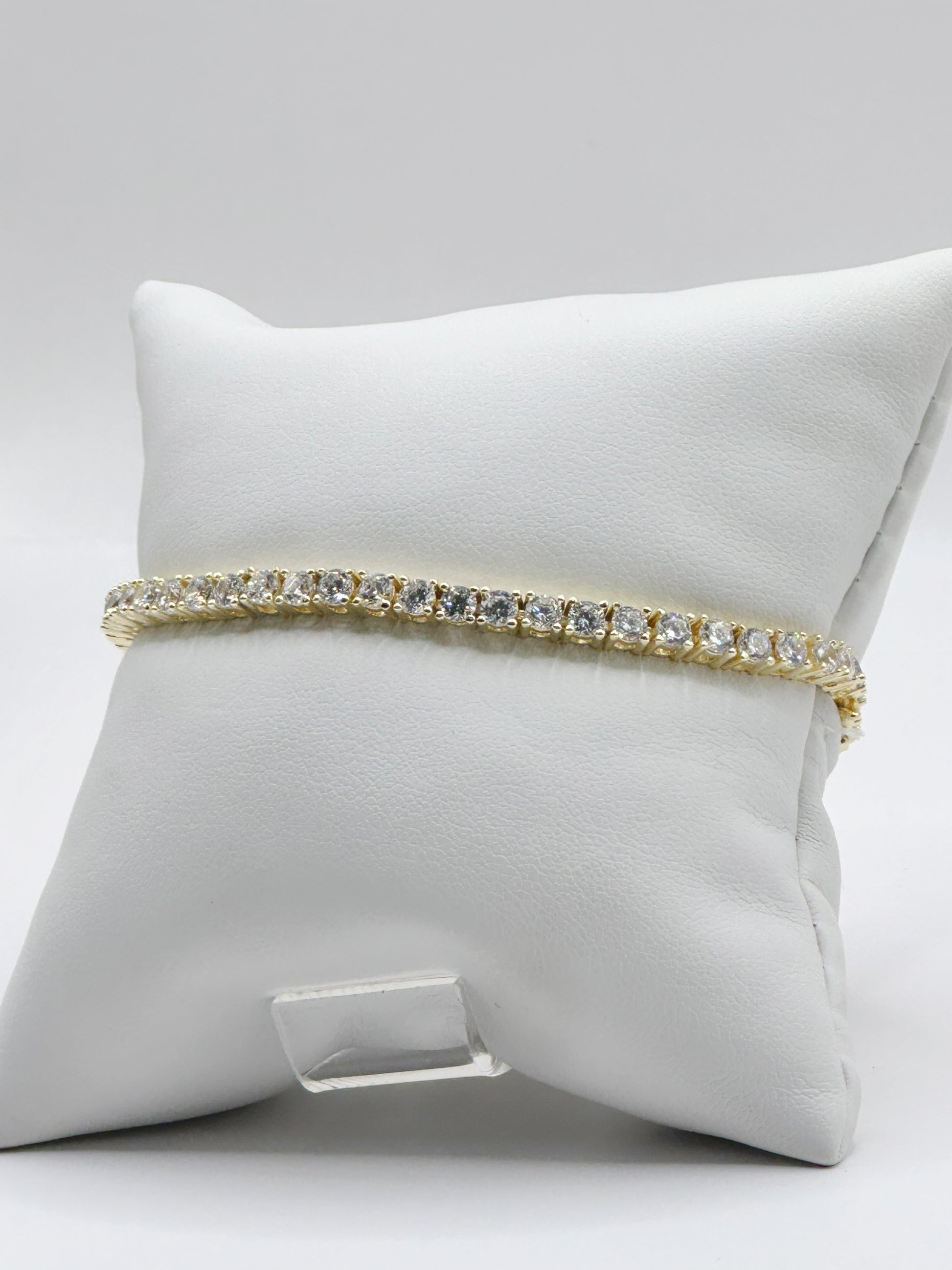 Pulsera Tennis, 3mm White Zirconia, Gold Plated, Plata 925
