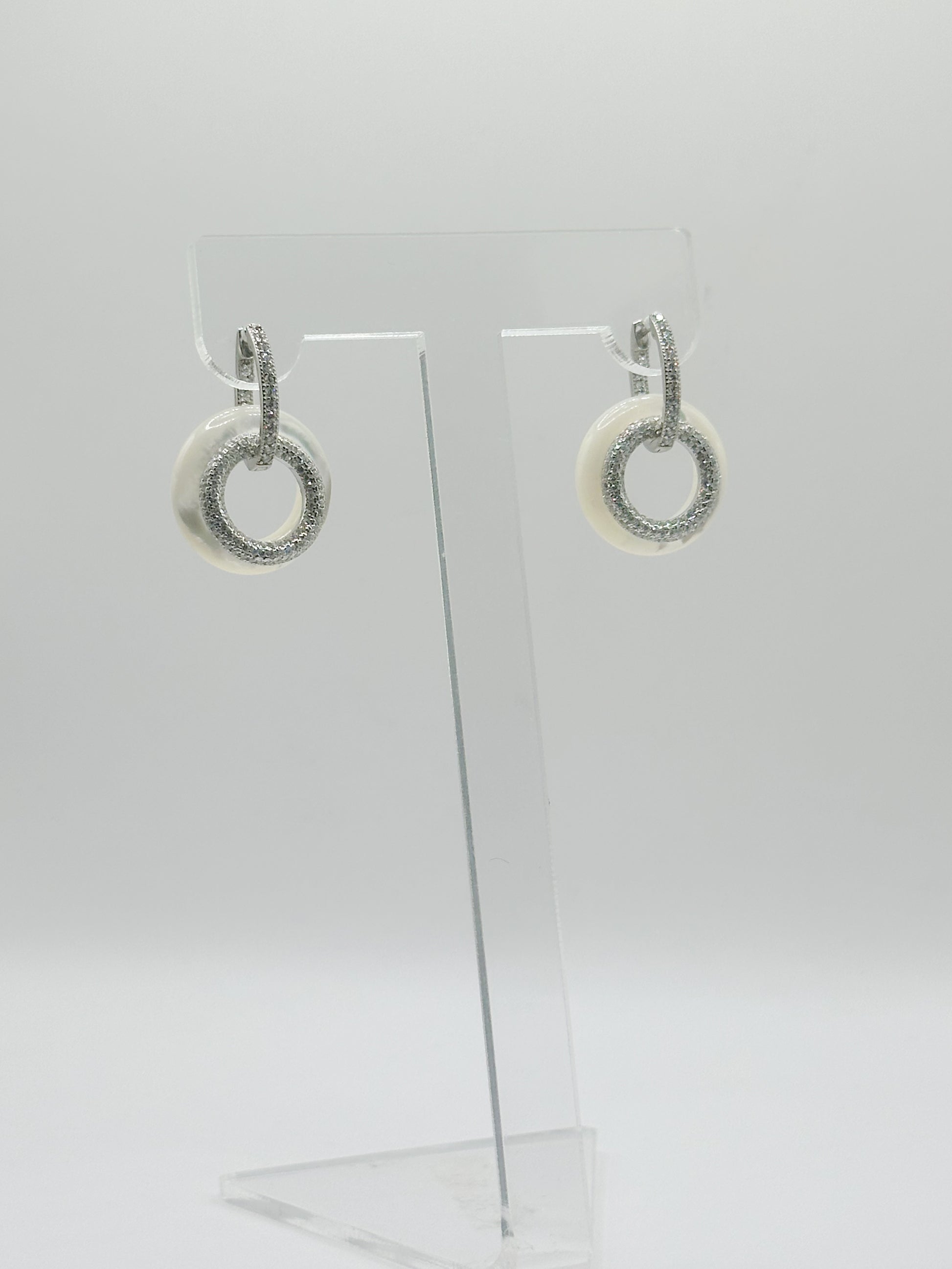 Pantallas Hoops Charm Círculo Madre Perla, White Zirconia, In and Out, Plata 925, Rhodium Plated