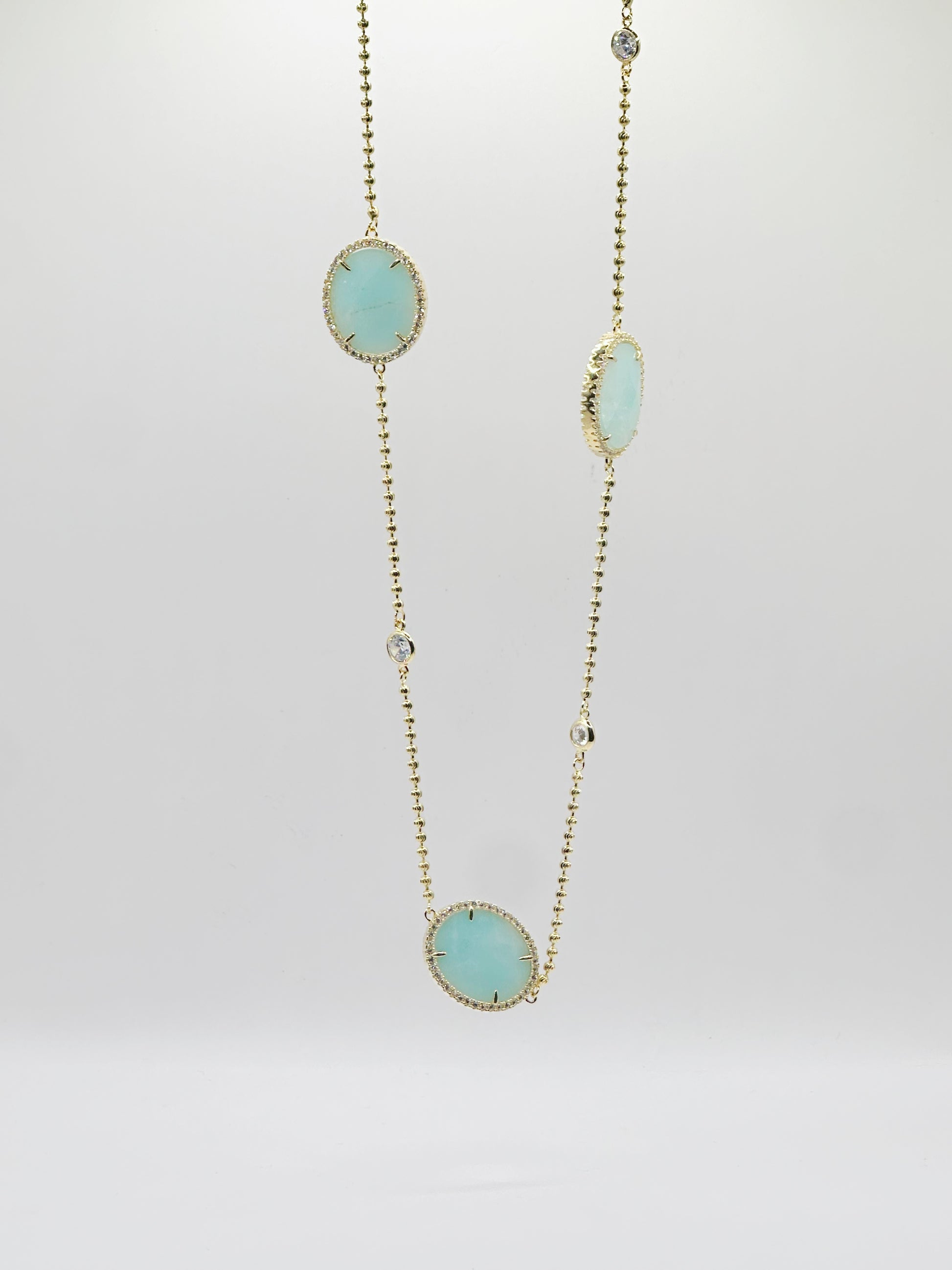 Collar Largo, Piedra Amazonite , Zirconias, Gold Plated Plata 925