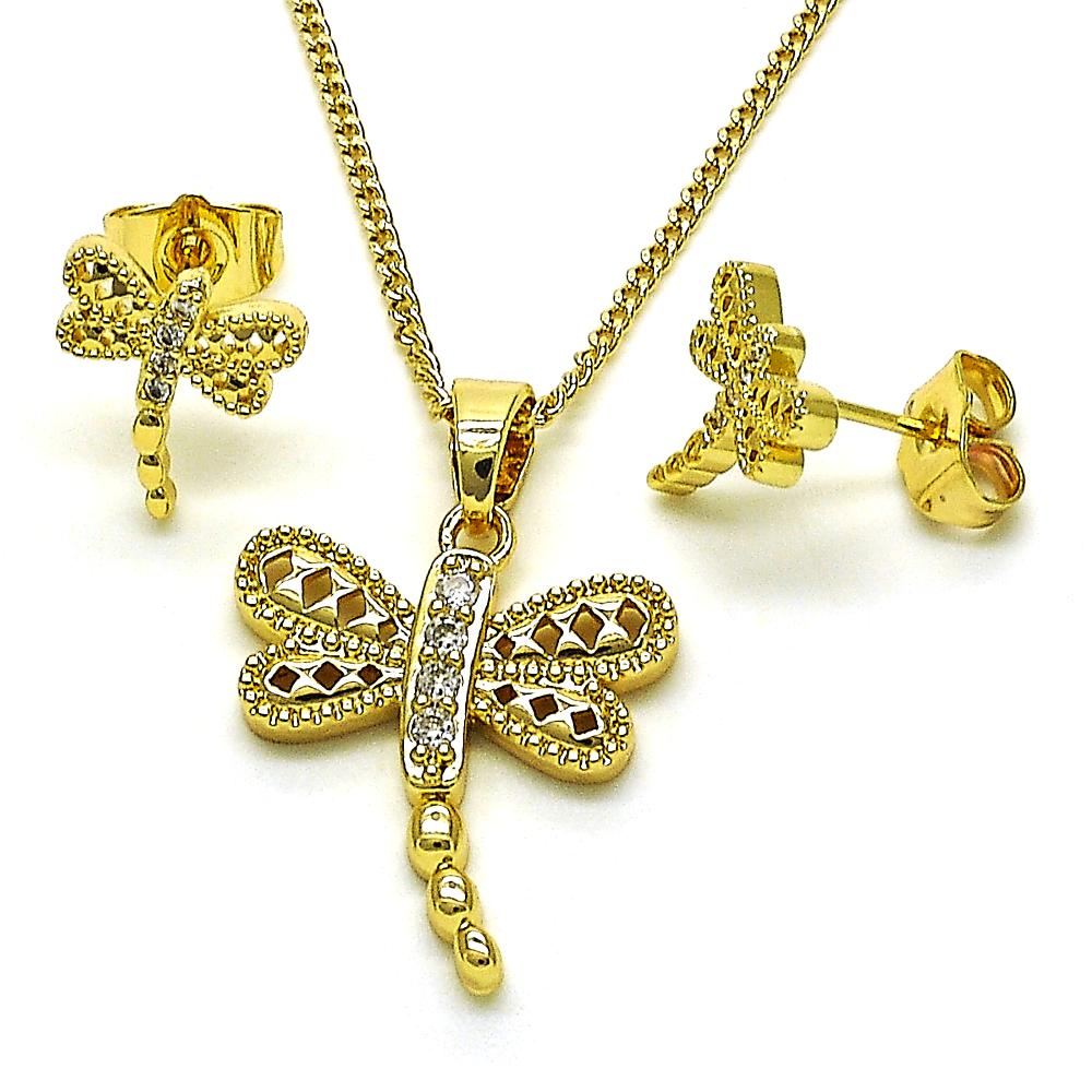 Set Collar/ Pantallas Libélulas Blanca, Gold Filled