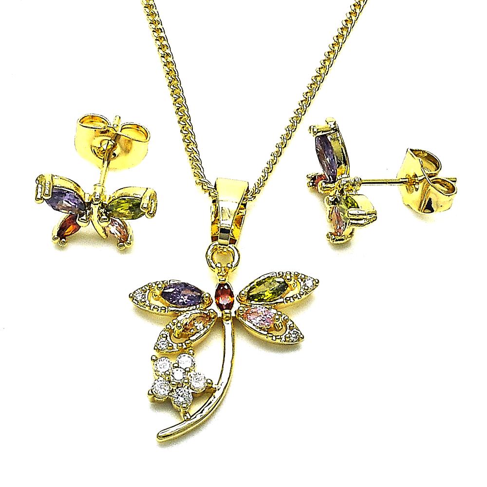 Set Collar/ Pantallas Libélulas Multicolor, Gold Filled